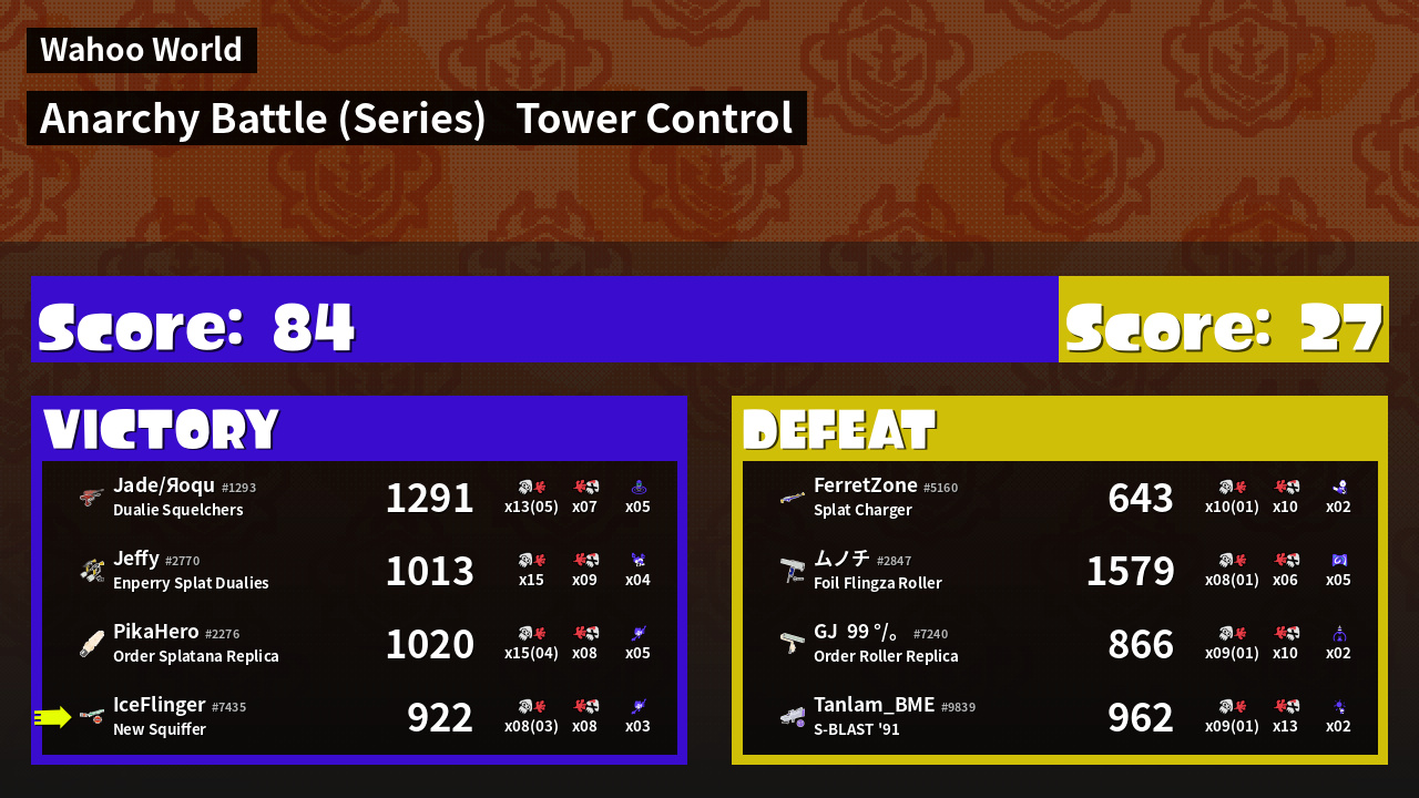 | Medals | #1 Super Jump Spot #1 Ink Consumer | ||