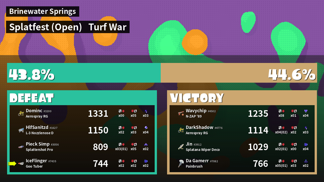 | Medals | #1 Popular Target #1 Enemy-Base Inker #1 Enemy Splatter | ||