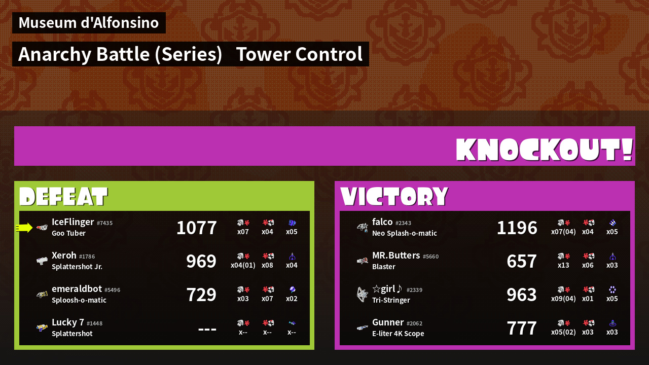 | Medals | #1 Overall Splatter #1 Turf Inker #1 Popular Target | ||