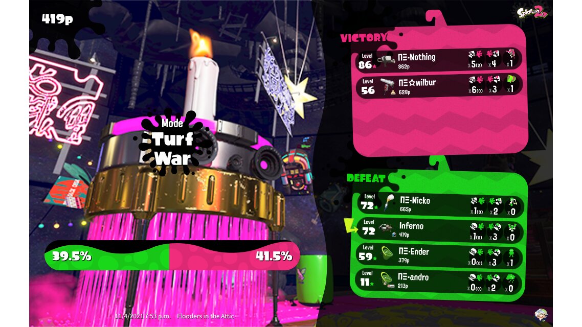 | Mode | Turf War - Private Battle | ||||||||||||||||||||||||||||