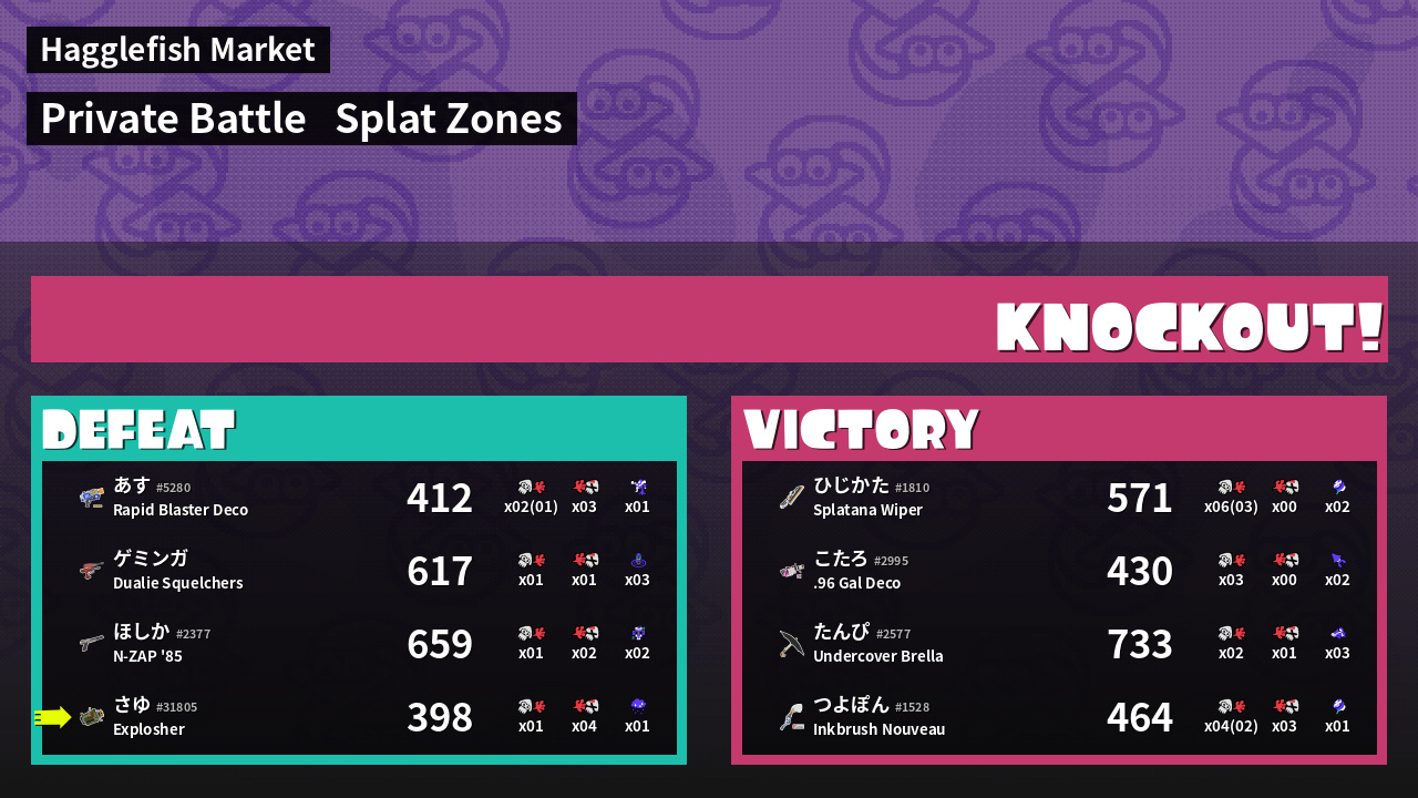 | Mode | Splat Zones - Private Battle | ||