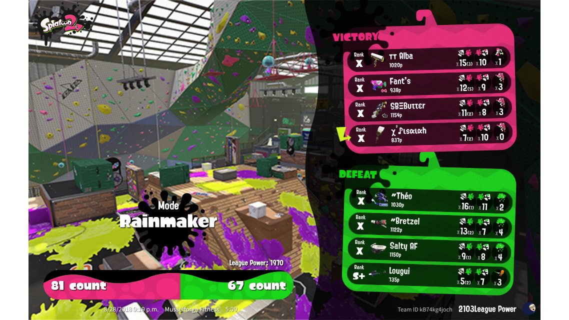 | Mode | Rainmaker - League Battle (Twin) | ||||||||||||||||||||||||||||