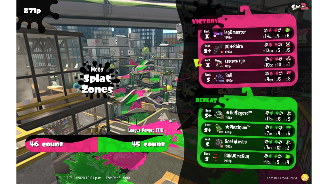 | Mode | Splat Zones - League Battle (Twin) | ||||||||||||||||