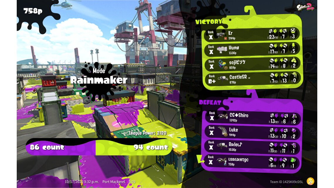 | Mode | Rainmaker - League Battle (Twin) | ||||||||||||||||||||||||||||||||||
