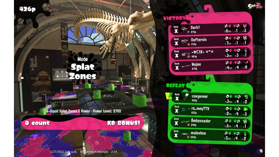 | Mode | Splat Zones - Ranked Battle | ||||||||||||||||||||||||||||||||||
