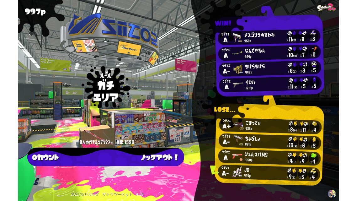 | Mode | Splat Zones - Ranked Battle | ||||||||||||||||