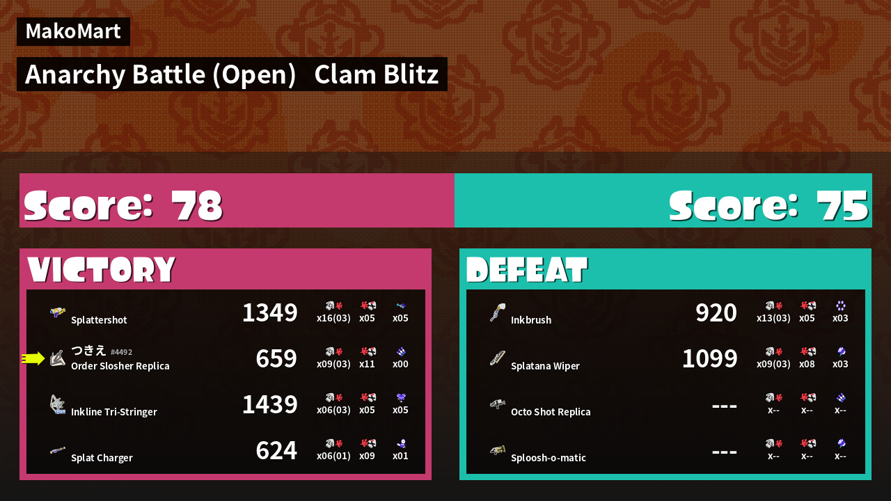 | Mode | Clam Blitz - Anarchy Battle (Open) | ||