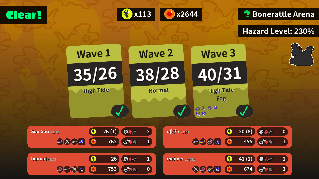 | Weapons | Mini Splatling Recycled Brella 24 Mk I E-liter 4K | Recycled Brella 24 Mk I Dapple Dualies Mini Splatling | Dapple Dualies E-liter 4K Recycled Brella 24 Mk I | E-liter 4K Mini Splatling Dapple Dualies |