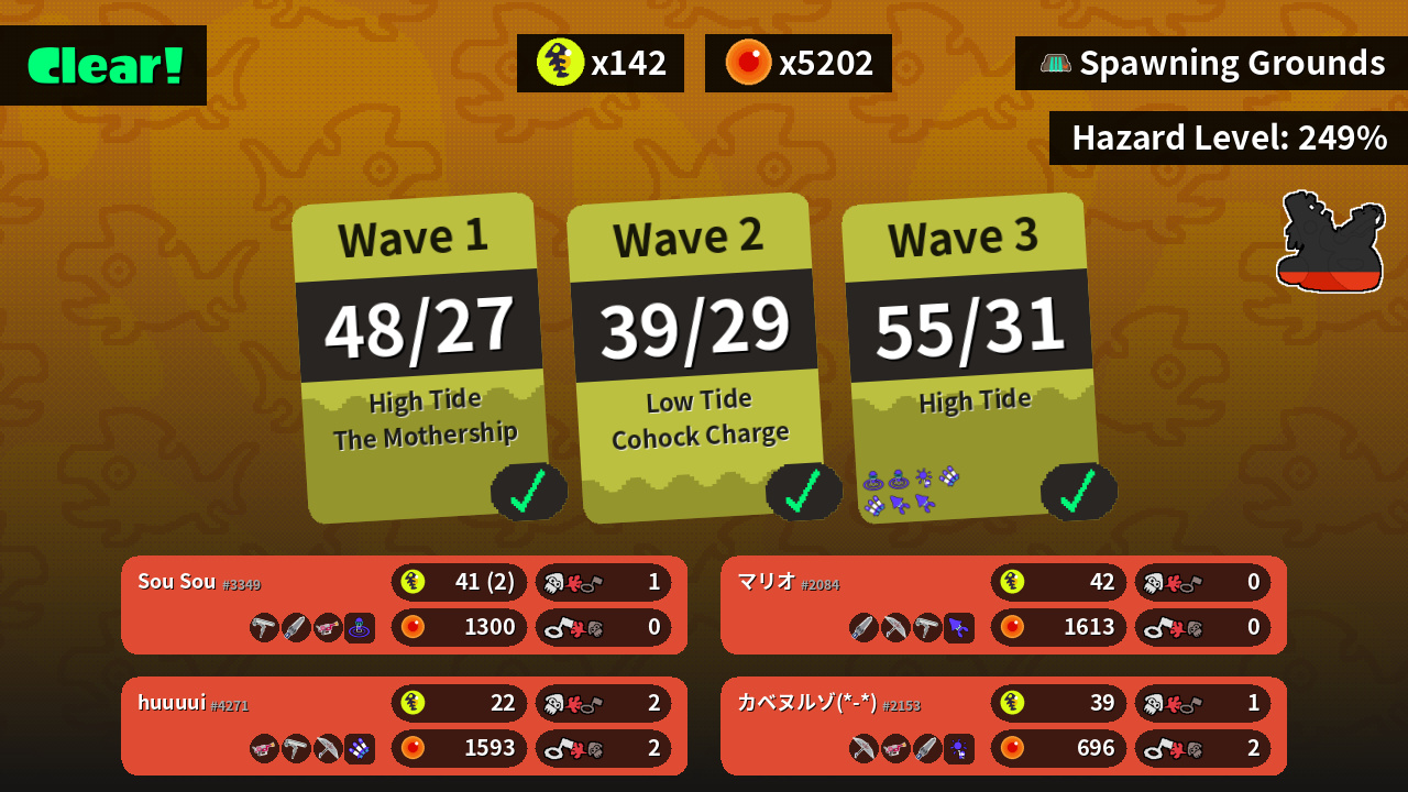 | Weapons | Dynamo Roller Splatana Stamper Rapid Blaster Pro | Splatana Stamper Splat Brella Dynamo Roller | Splat Brella Rapid Blaster Pro Splatana Stamper | Rapid Blaster Pro Dynamo Roller Splat Brella |