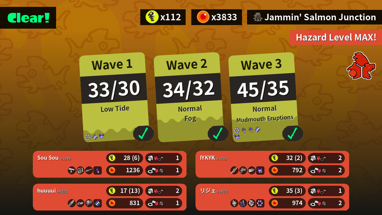 | Weapons | Splat Roller Grizzco Slosher Splat Charger | Tri-Stringer Tri-Slosher REEF-LUX 450 | Splatana Wiper Aerospray MG Heavy Edit Splatling | Splatana Stamper Ballpoint Splatling Clash Blaster |