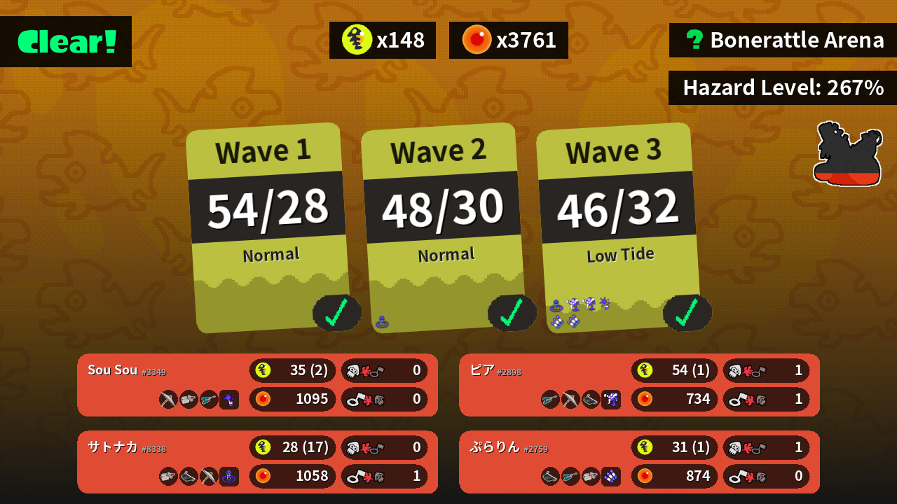 | Weapons | Recycled Brella 24 Mk I Heavy Edit Splatling Jet Squelcher | Jet Squelcher Recycled Brella 24 Mk I Bloblobber | Bloblobber Jet Squelcher Heavy Edit Splatling | Heavy Edit Splatling Bloblobber Recycled Brella 24 Mk I |