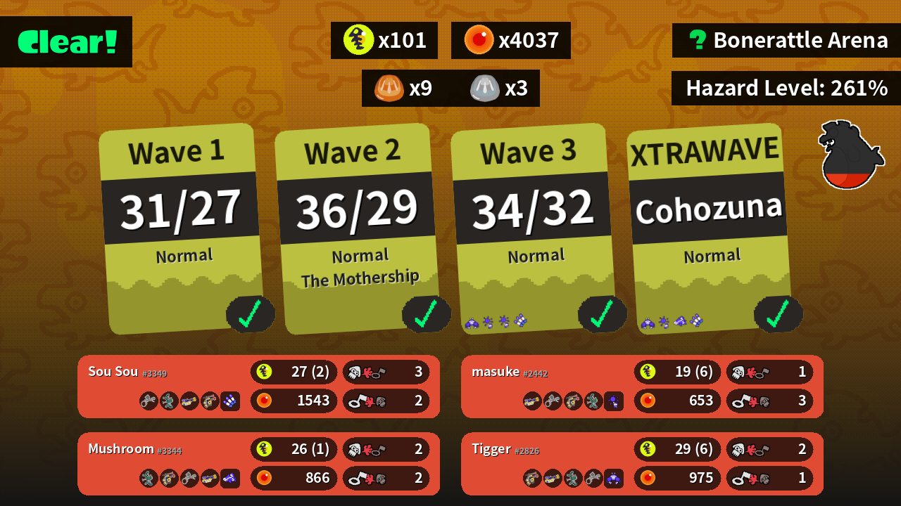 | Weapons | Aerospray MG Wellstring V Mini Splatling Douser Dualies FF | Douser Dualies FF Mini Splatling Wellstring V Aerospray MG | Wellstring V Douser Dualies FF Aerospray MG Mini Splatling | Mini Splatling Aerospray MG Douser Dualies FF Wellstring V |