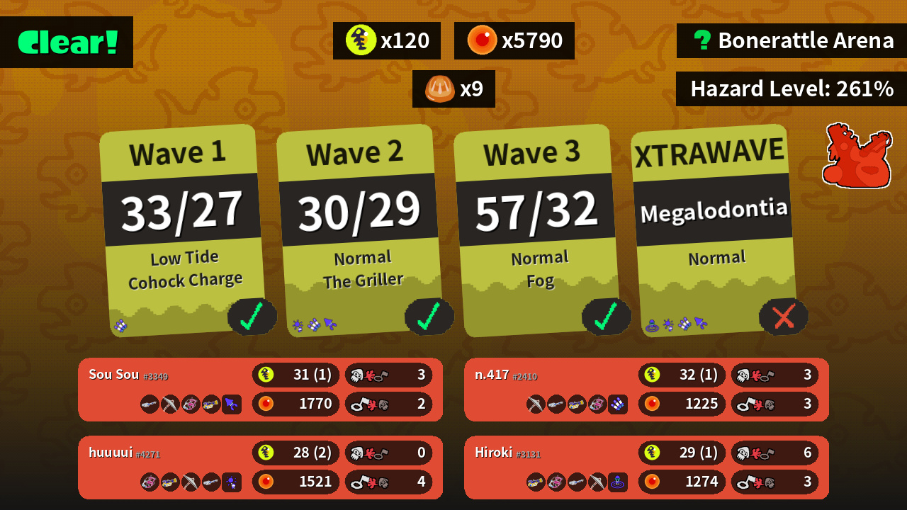 | Boss Salmonid | 28 | 10 | 21 | 17 |