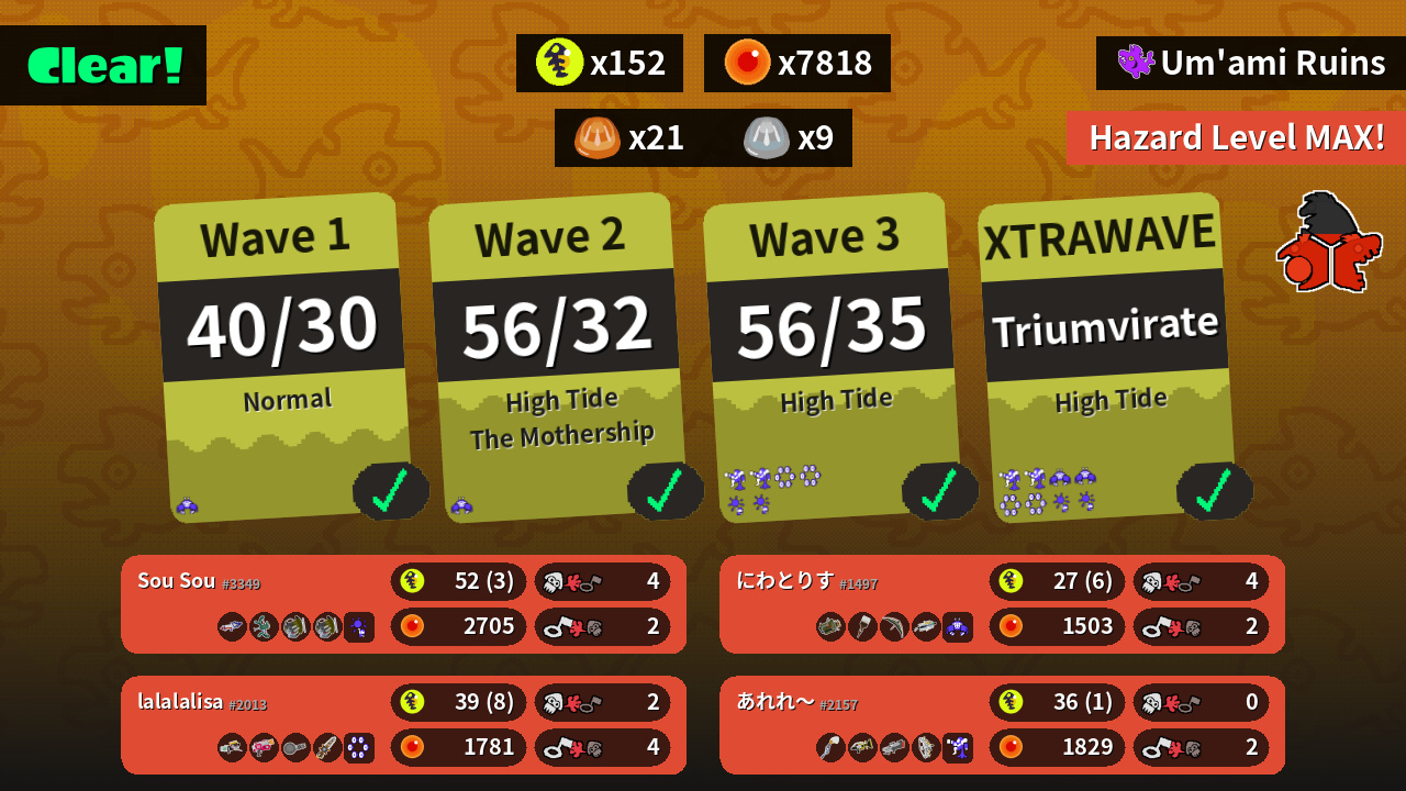 | Boss Salmonid | 21 | 21 | 14 | 18 |