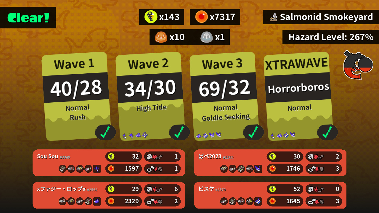 | Boss Salmonid | 13 | 13 | 11 | 17 |
