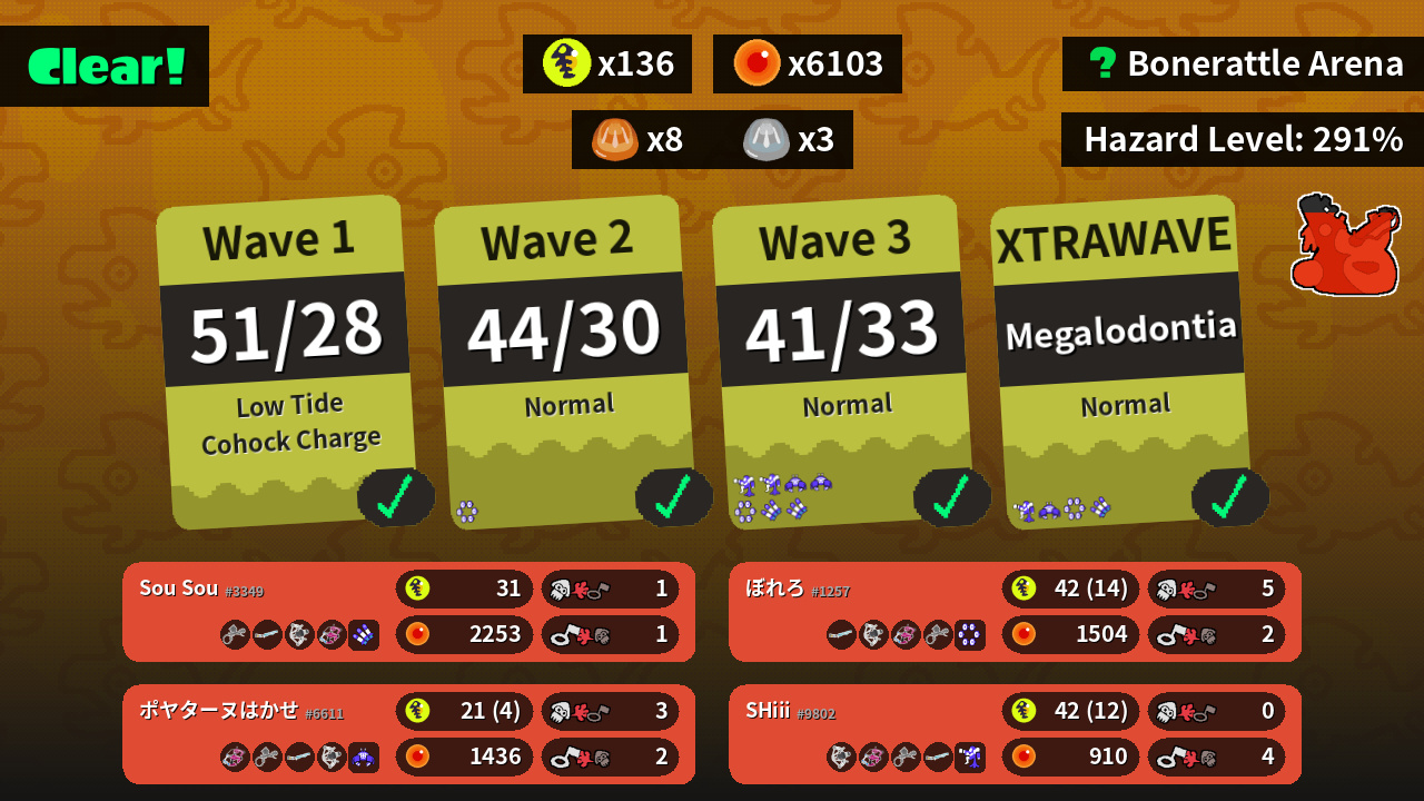 | Boss Salmonid | 38 | 32 | 11 | 23 |