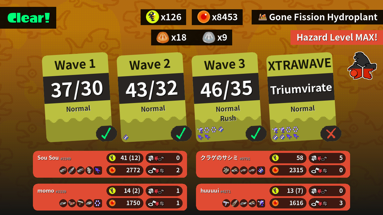 | Weapons | S-BLAST '92 Splatana Stamper S-BLAST '92 Grizzco Stringer | Grizzco Dualies Grizzco Blaster Grizzco Charger Grizzco Charger | Ballpoint Splatling Hydra Splatling Carbon Roller Grizzco Brella | Big Swig Roller Grizzco Splatana Ballpoint Splatling Grizzco Blaster |