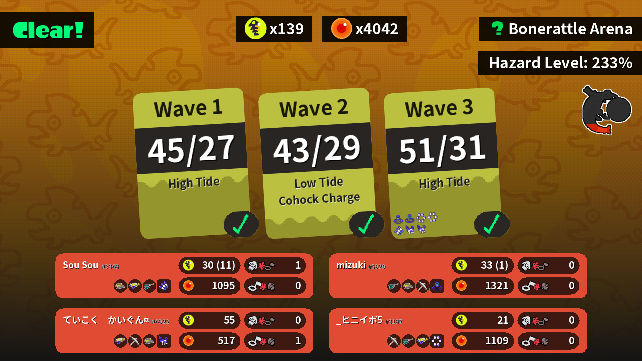 | Boss Salmonid | 19 | 12 | 23 | 16 |