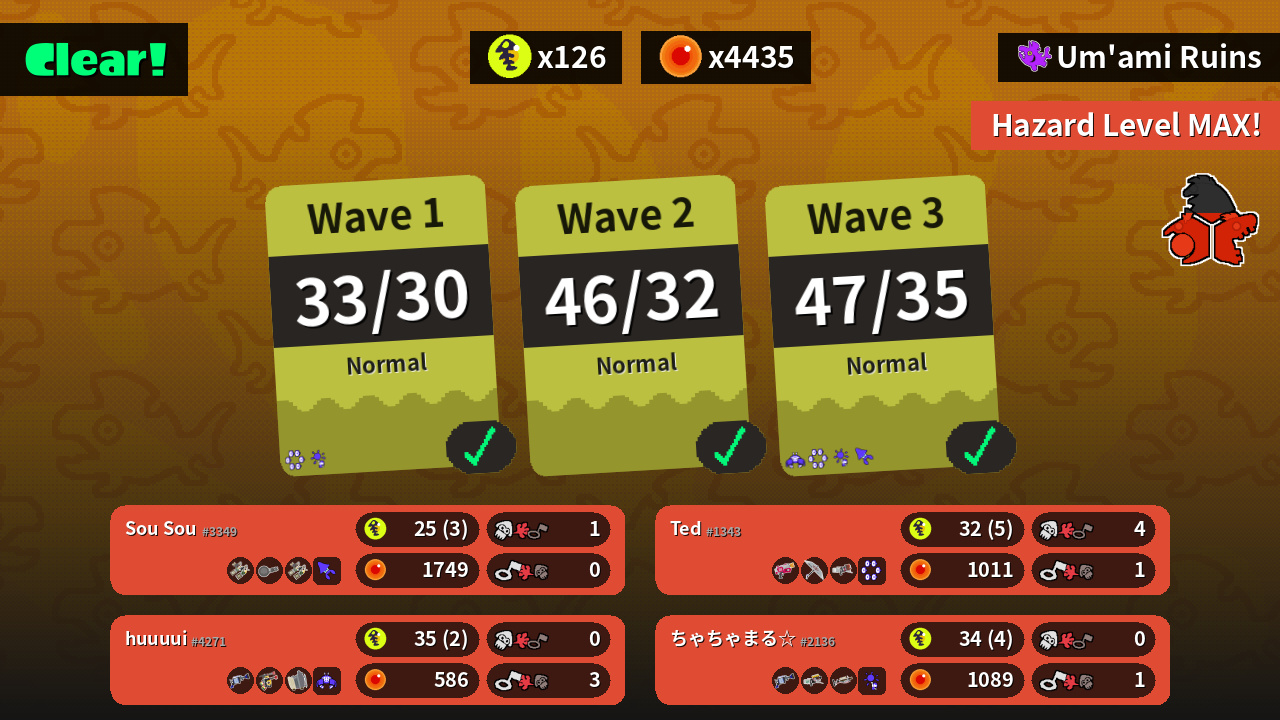 | Weapons | Grizzco Dualies Nautilus 47 Grizzco Dualies | H-3 Nozzlenose Douser Dualies FF Sloshing Machine | H-3 Nozzlenose Grizzco Blaster Grizzco Charger | Rapid Blaster Splat Brella Blaster |