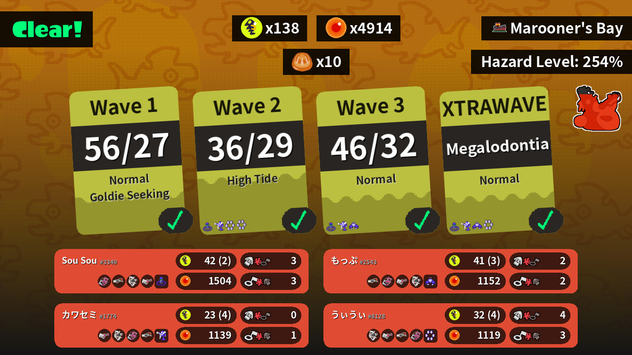 | Boss Salmonid | 20 | 17 | 19 | 14 |