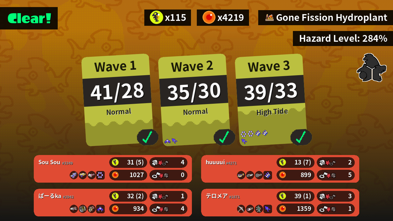 | Weapons | Glooga Dualies Splattershot Heavy Splatling | Recycled Brella 24 Mk I .96 Gal Wellstring V | Blaster Grizzco Slosher Douser Dualies FF | Mini Splatling Ballpoint Splatling Nautilus 47 |