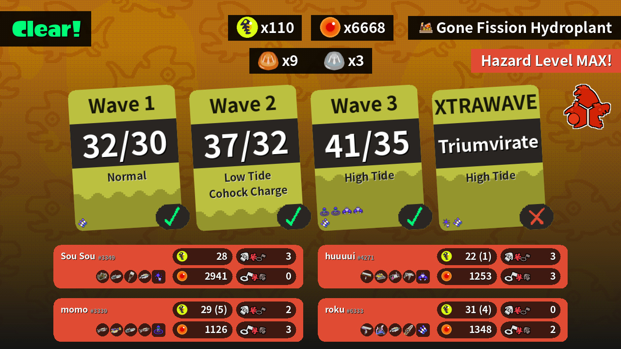 | Weapons | Explosher Ballpoint Splatling Octobrush Grizzco Brella | Splat Roller Slosher Grizzco Brella Grizzco Splatana | Grizzco Charger Mini Splatling Ballpoint Splatling Grizzco Charger | Carbon Roller Dread Wringer .52 Gal Grizzco Roller |