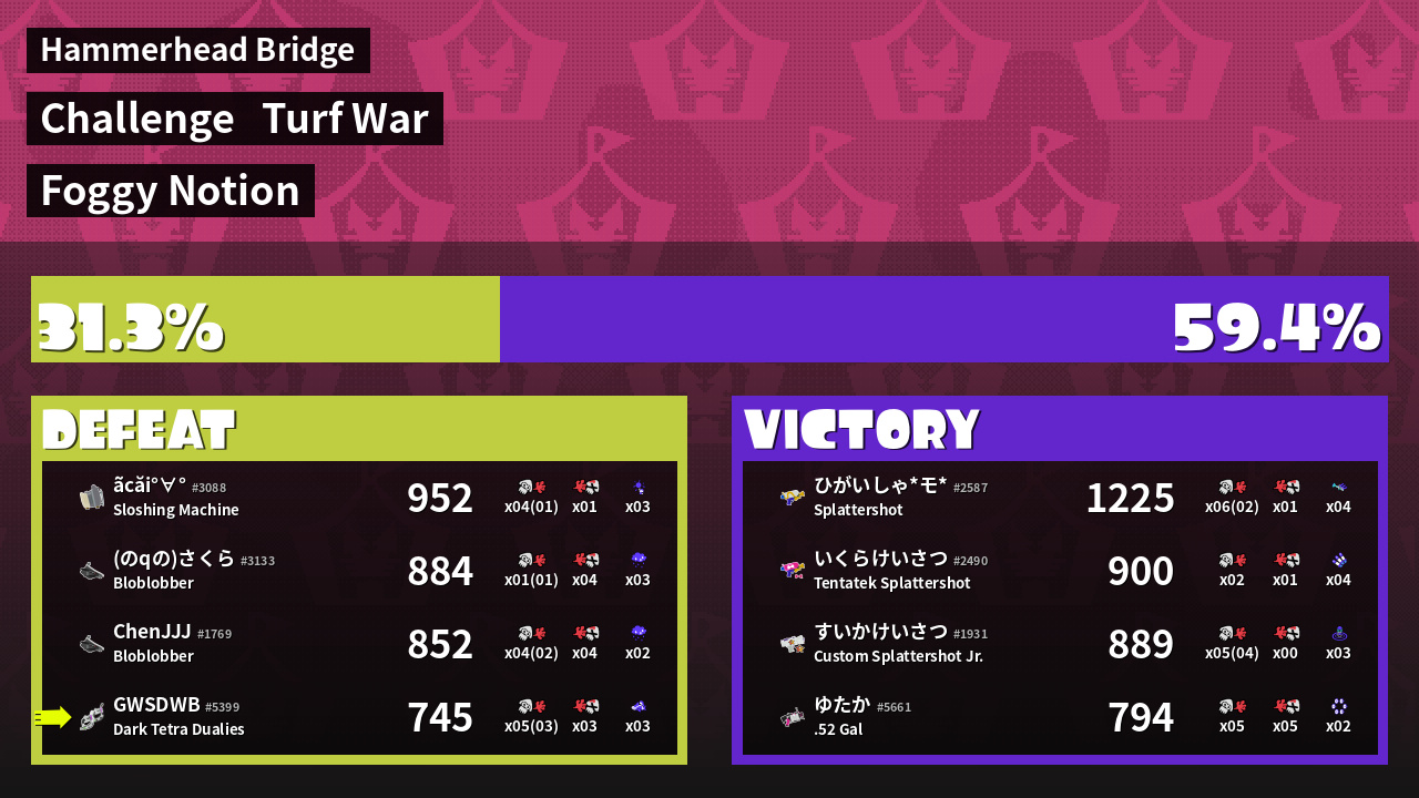 | Medals | #1 Overall Splatter #1 Splat Assister #1 Base Defender | ||