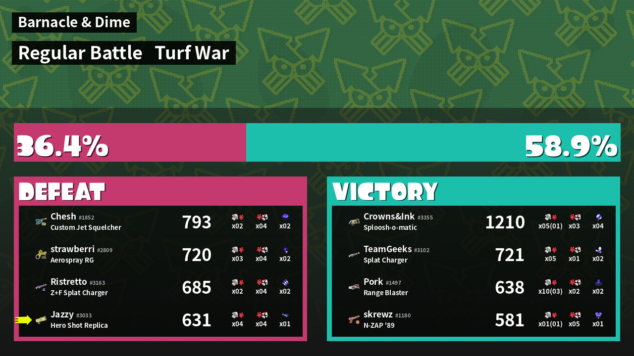 | Mode | Turf War - Regular Battle | ||