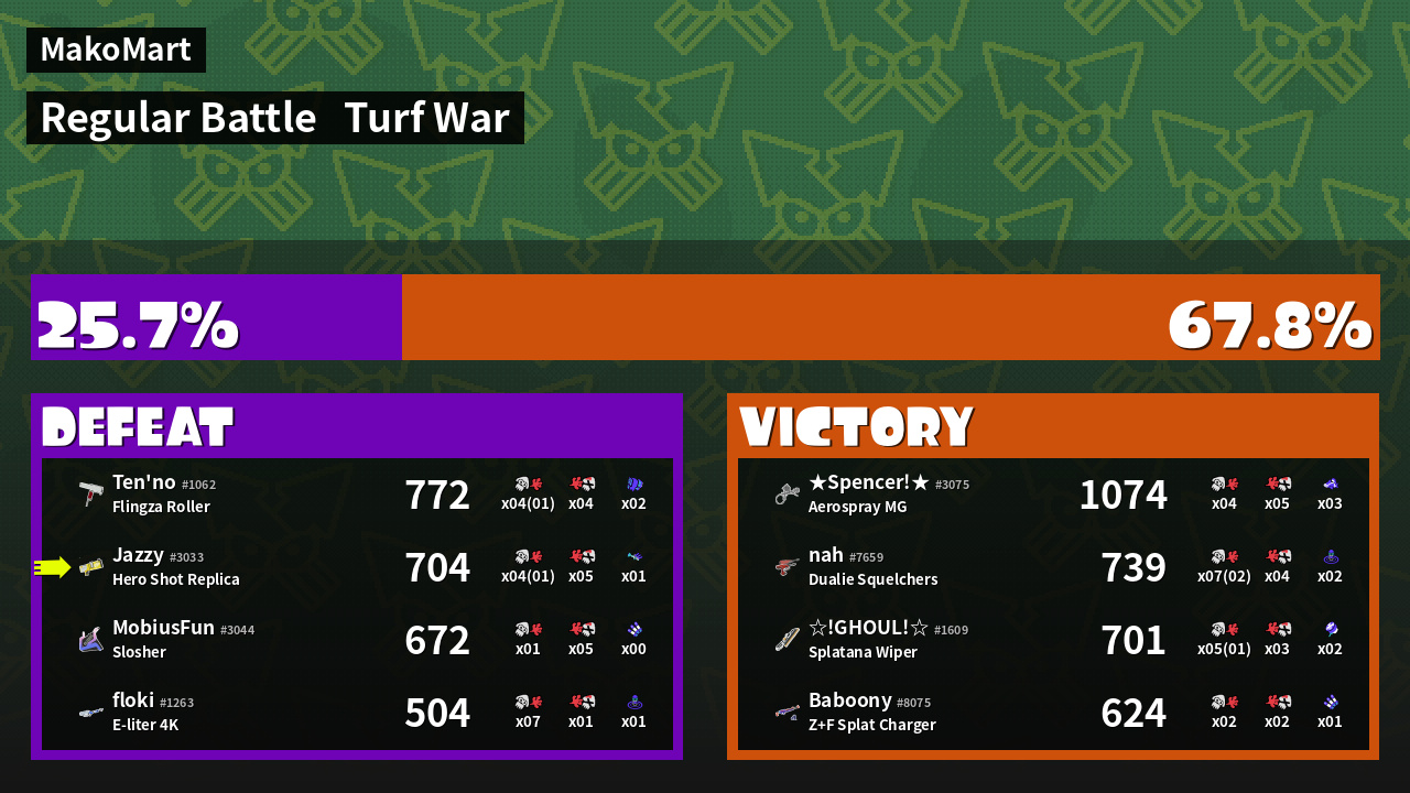 | Medals | #1 Enemy-Base Inker #1 Super Jump Spot #1 Splat Assister | ||