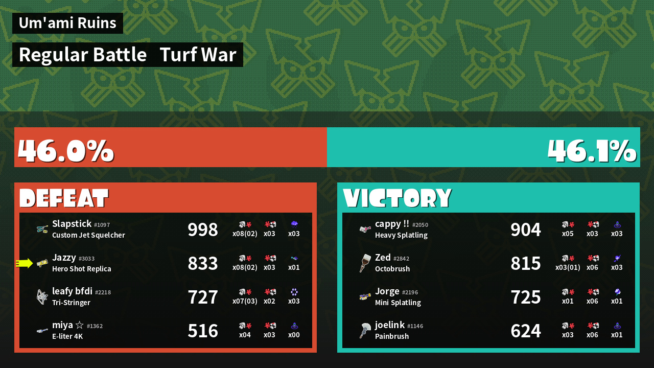 | Medals | #1 Overall Splatter #1 Enemy-Base Inker #1 Enemy Splatter | ||
