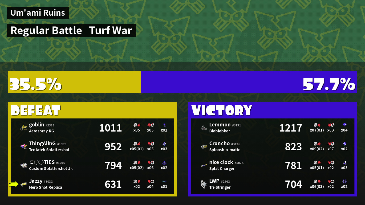 | Mode | Turf War - Regular Battle | ||