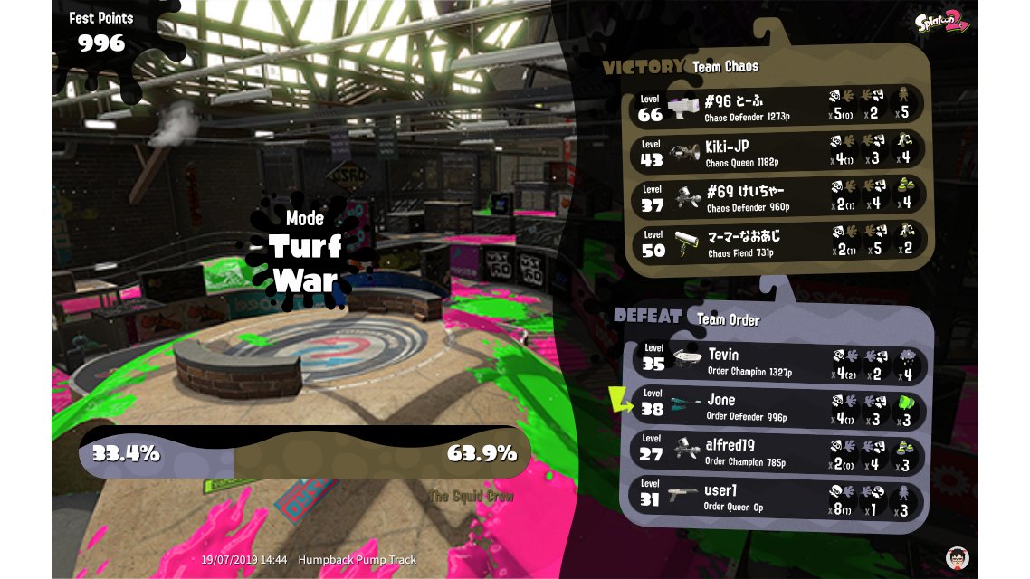 | Mode | Turf War - Splatfest (Team) | ||||||||||||||||||||||||||||||||||