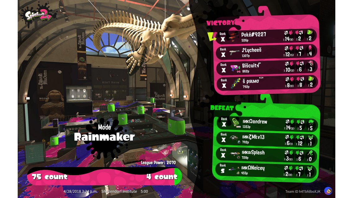 | Name | Weapon | Level | Rank | Inked | k+a/sp | k/d |