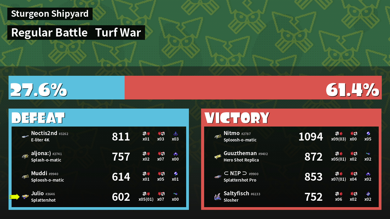 | Mode | Turf War - Regular Battle | ||