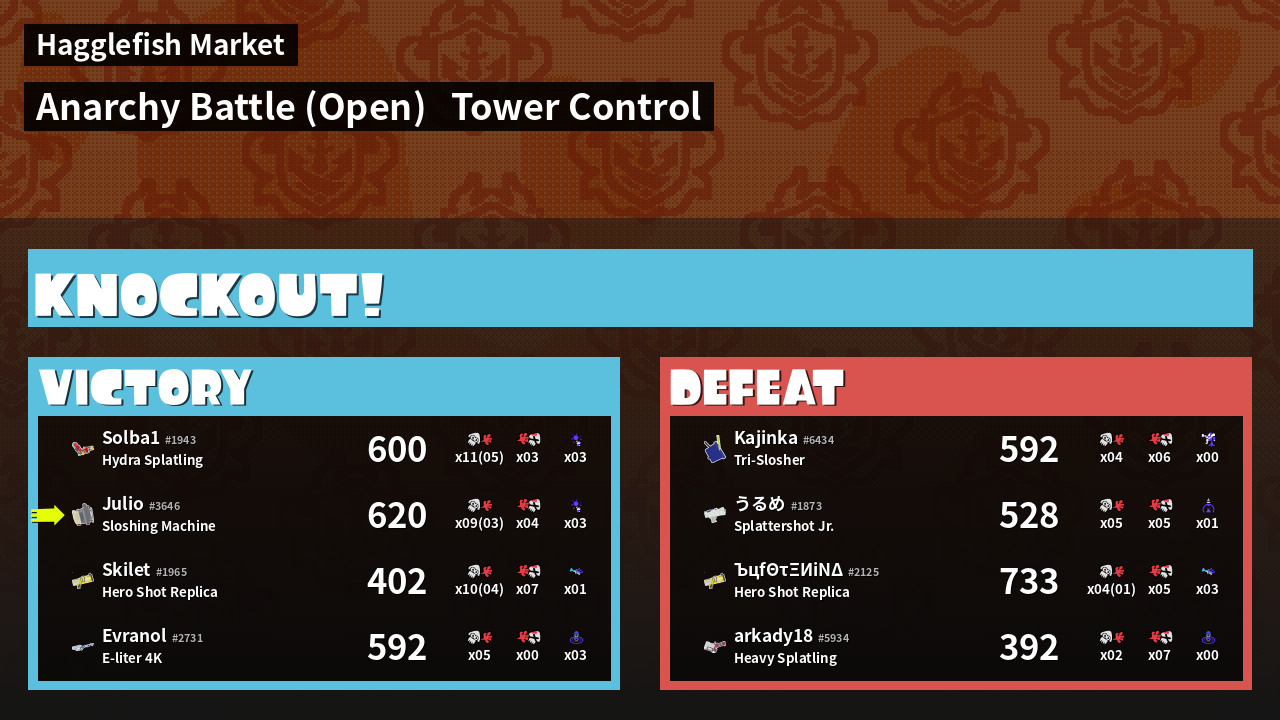 | Mode | Tower Control - Anarchy Battle (Open) | ||