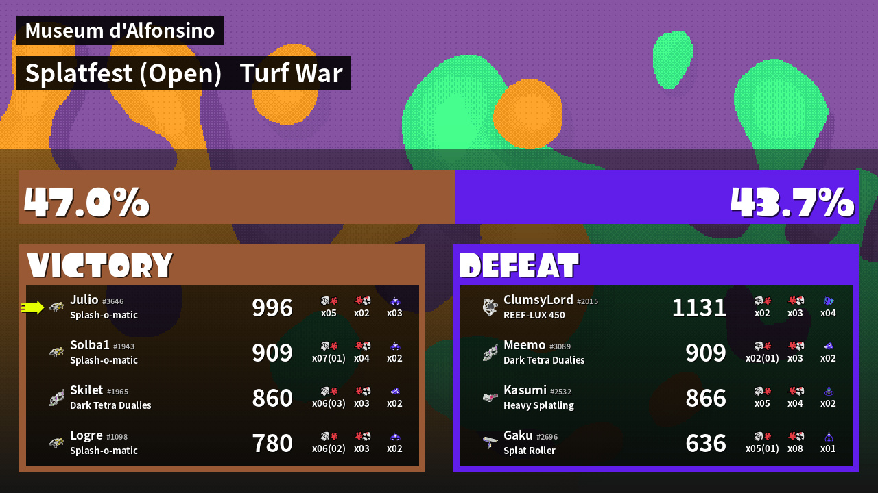 | Mode | Turf War - Splatfest (Open) | ||