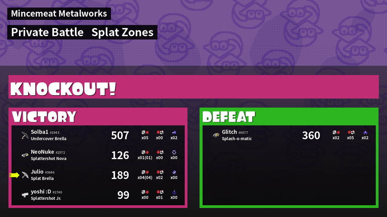 | Medals | #1 Splat Assister #1 Ground Traveler #2 Overall Splatter | ||