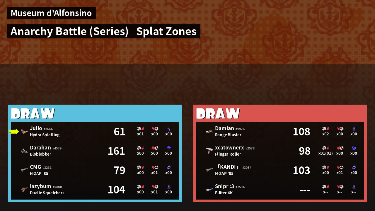| Mode | Splat Zones - Anarchy Battle (Series) | ||