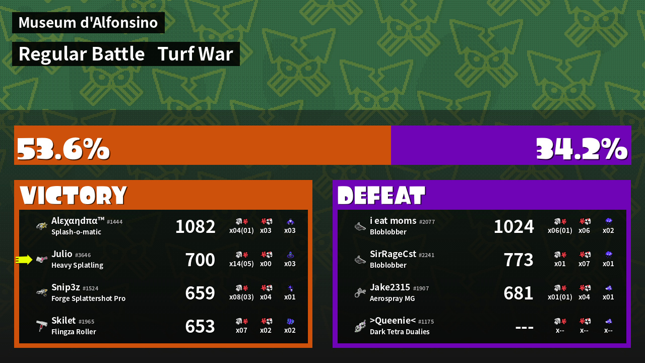 | Medals | #1 Overall Splatter #1 Enemy-Base Inker #1 Super Jump Spot | ||