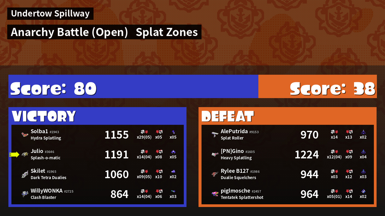 | Mode | Splat Zones - Anarchy Battle (Open) | ||