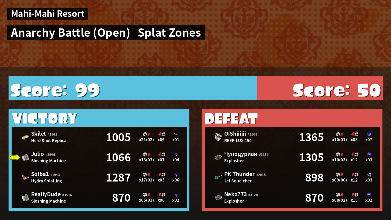 | Mode | Splat Zones - Anarchy Battle (Open) | ||