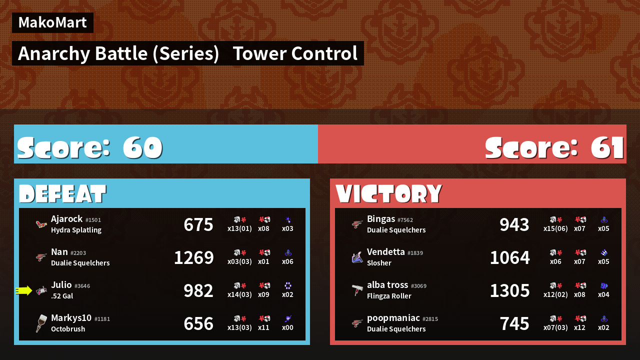 | Medals | #1 Overall Splatter #1 Splat Assister #1 Tower Stopper | ||