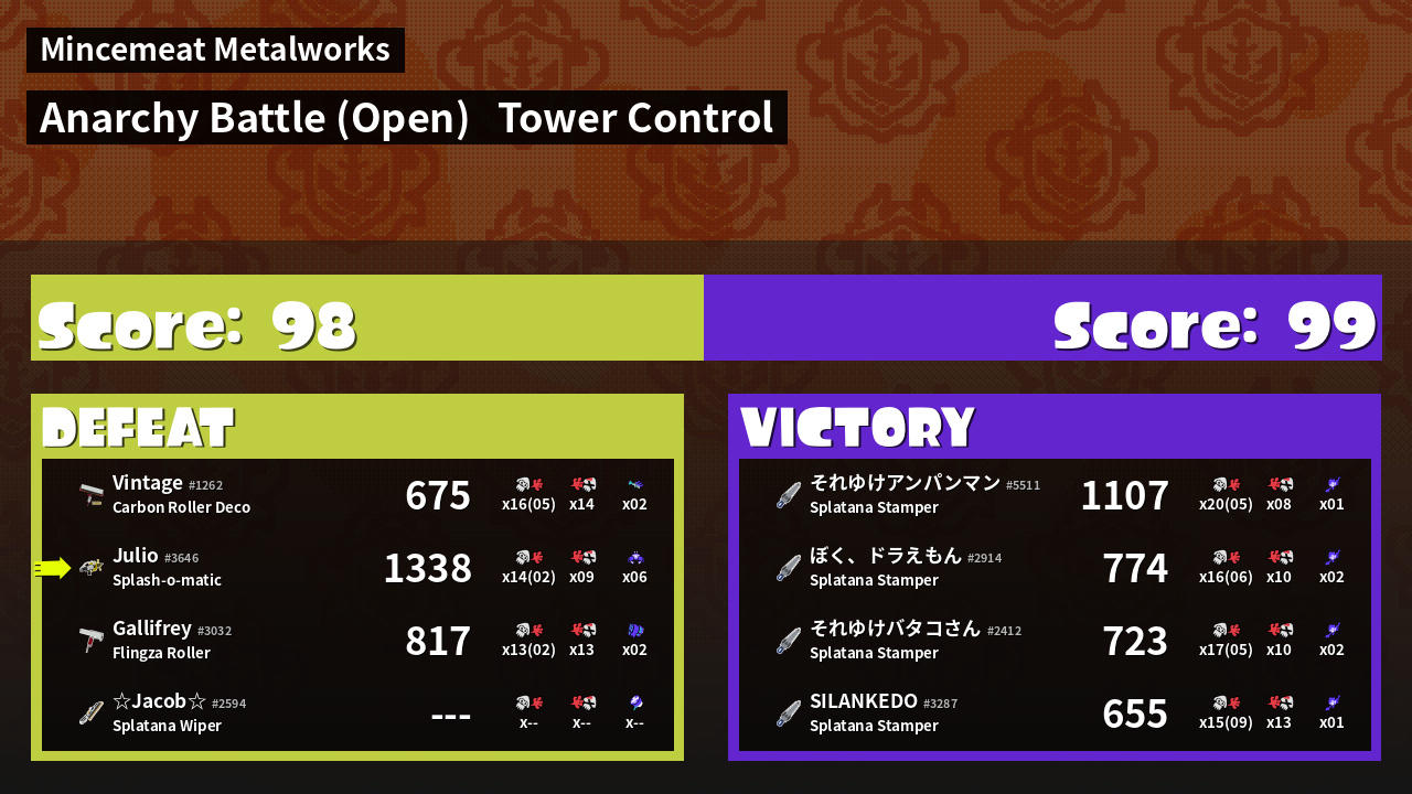 | Mode | Tower Control - Anarchy Battle (Open) | ||