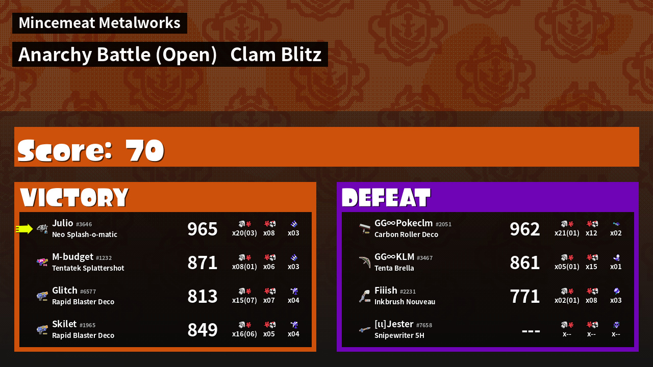 | Mode | Clam Blitz - Anarchy Battle (Open) | ||||