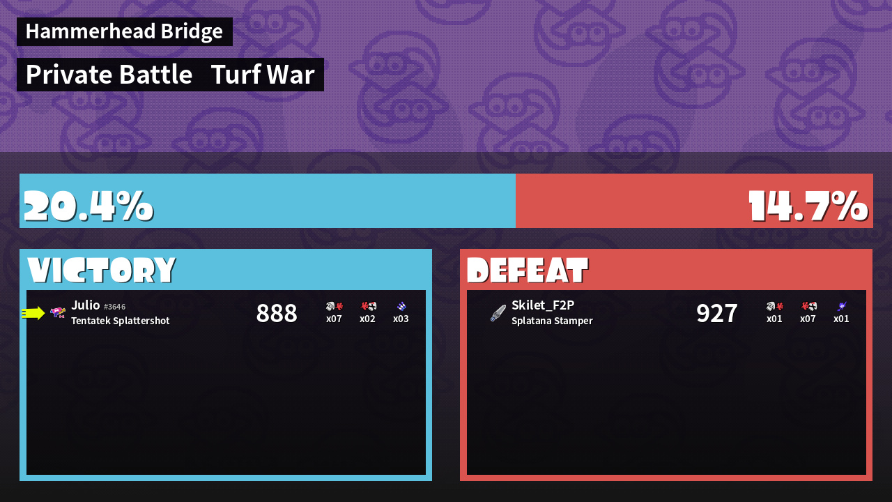 | Weapon | Tentatek Splattershot ( Splat Bomb / Triple Inkstrike) | ||