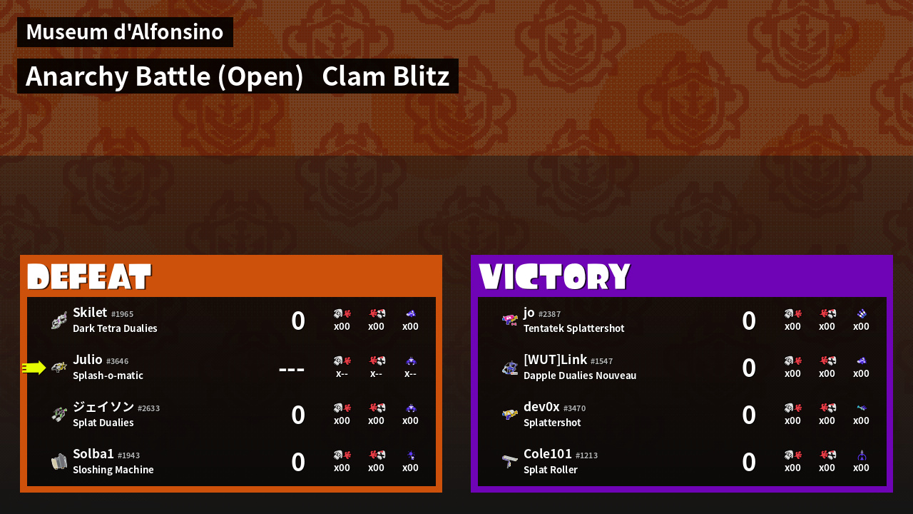 | Mode | Clam Blitz - Anarchy Battle (Open) | ||