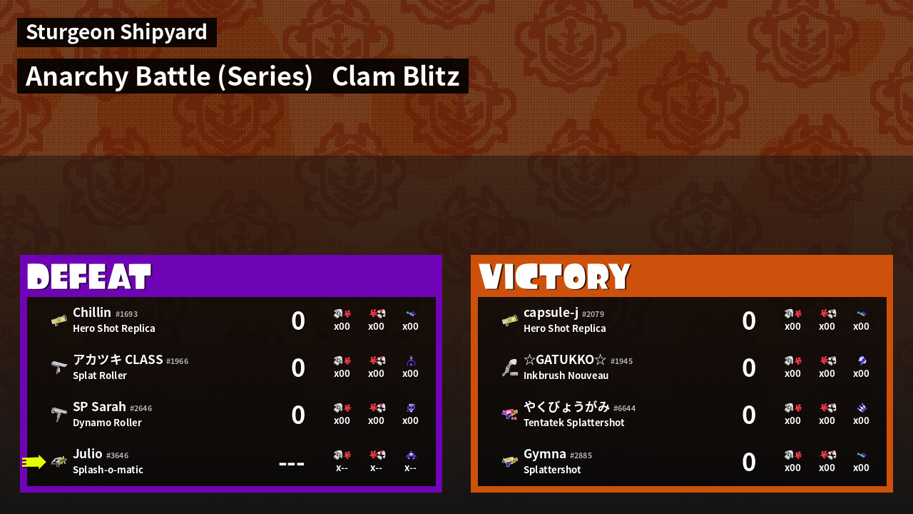 | Mode | Clam Blitz - Anarchy Battle (Series) | ||