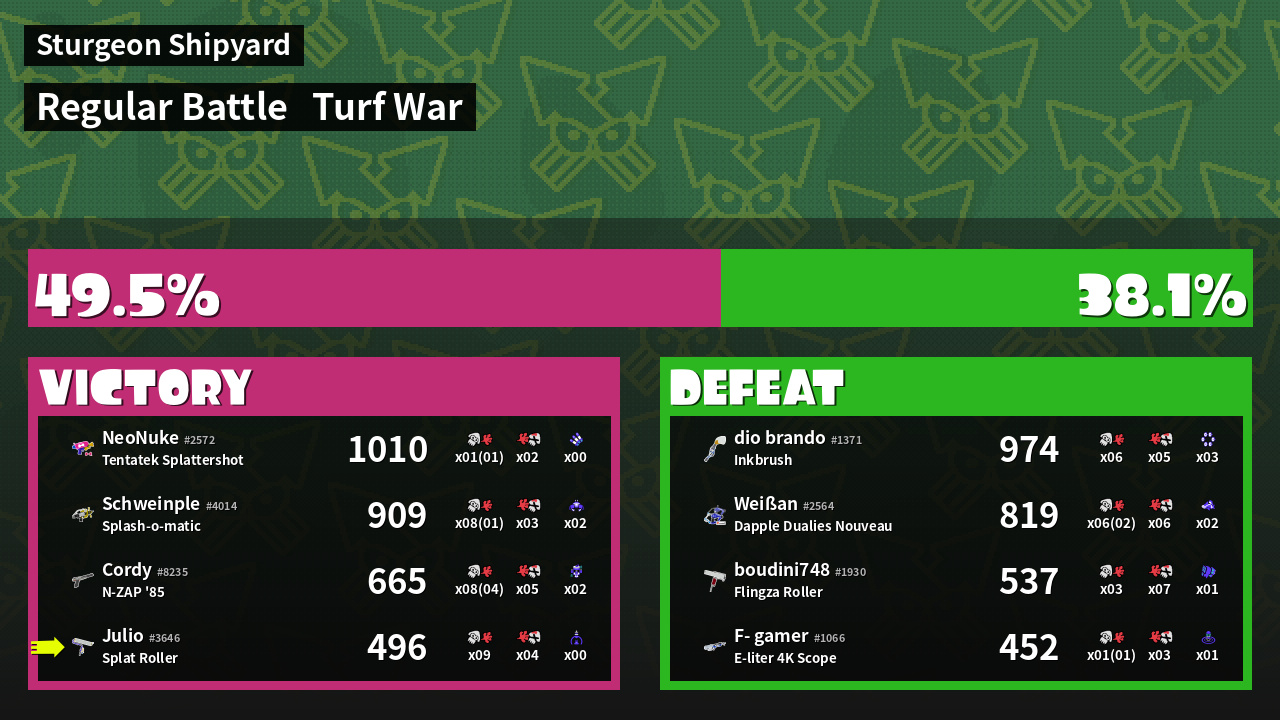 | Mode | Turf War - Regular Battle | ||