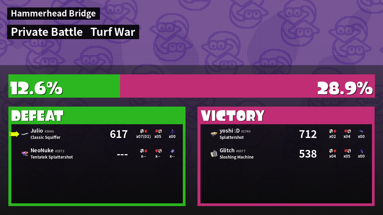 | Mode | Turf War - Private Battle | ||