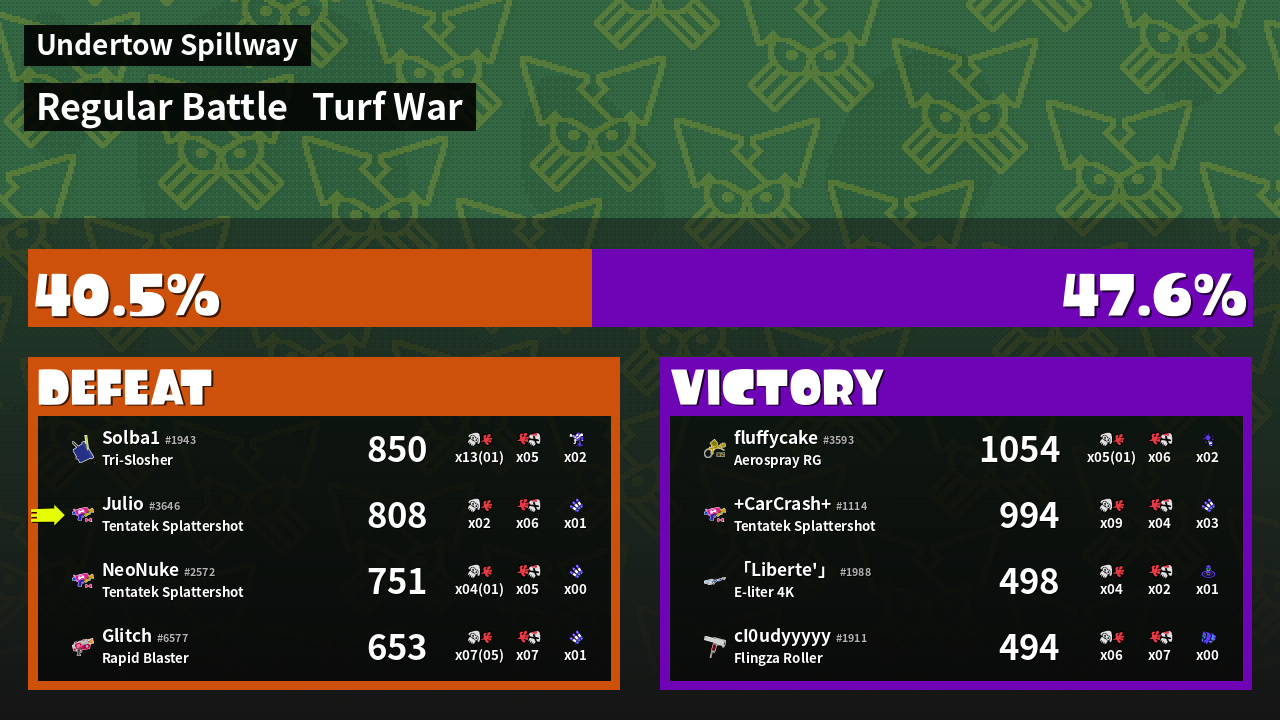 | Weapon | Tentatek Splattershot ( Splat Bomb / Triple Inkstrike) | ||